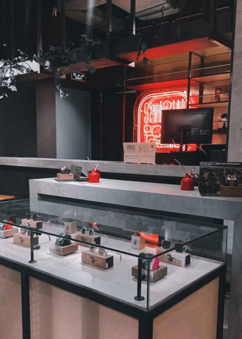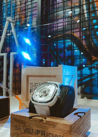 The newest stop on the SEVENFRIDAY space trip is Kuwait. Fitting in perfectly with the other spaces, the build of our watches, where the wearer gets a peek of the internal workings, inspires the use of mesh and glass throughout the store. The neon sign reading ‘show me don’t tell me’, is a reminder of the SEVENFRIDAY values. We want our spaces to help create and nurture a community and hope that guests leave with an understanding of the brand and what we stand for. Our spaces are not just a place to sell our products, they are an extension of the brand and embody the SEVENFRIDAY lifestyle!