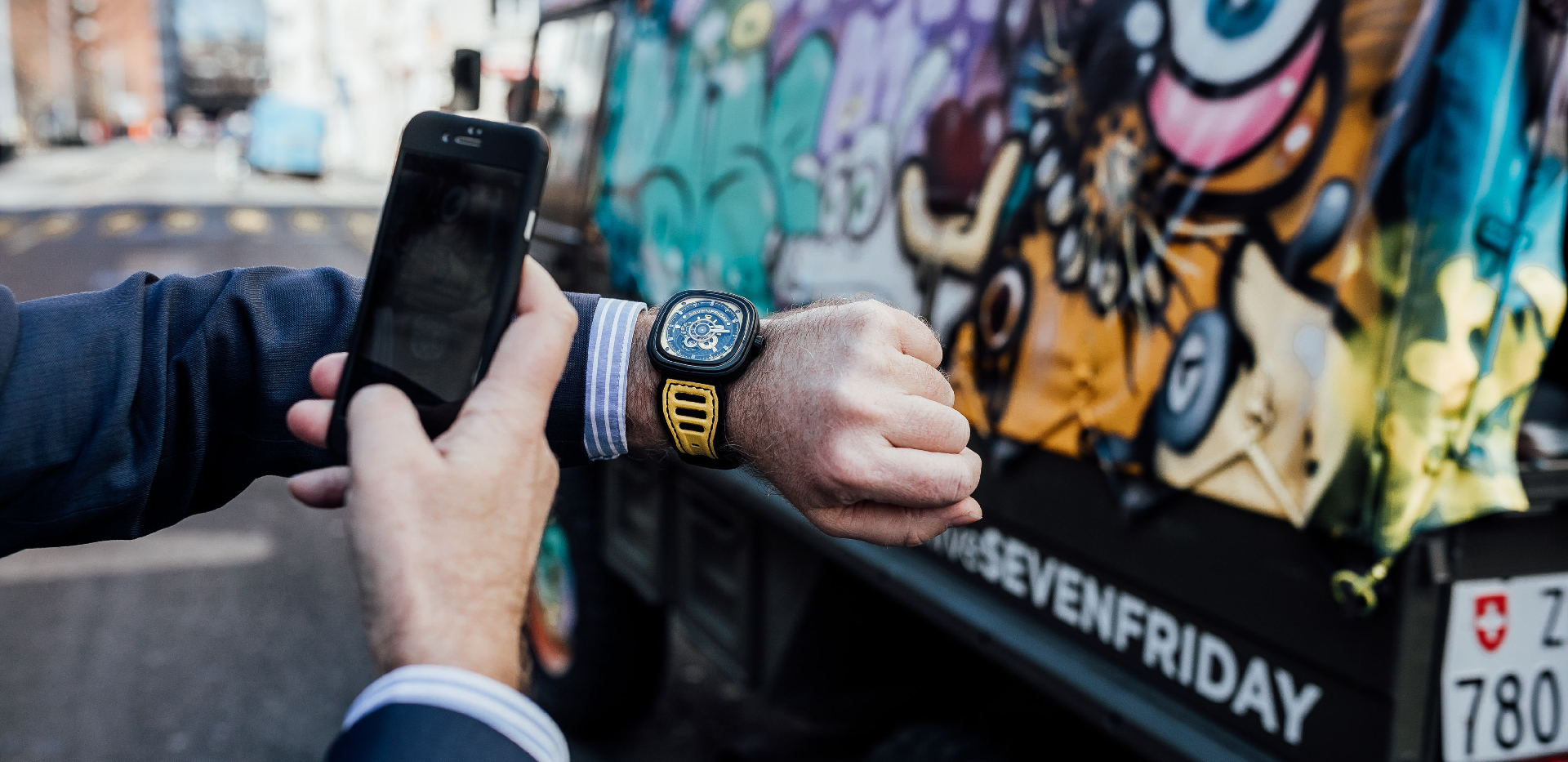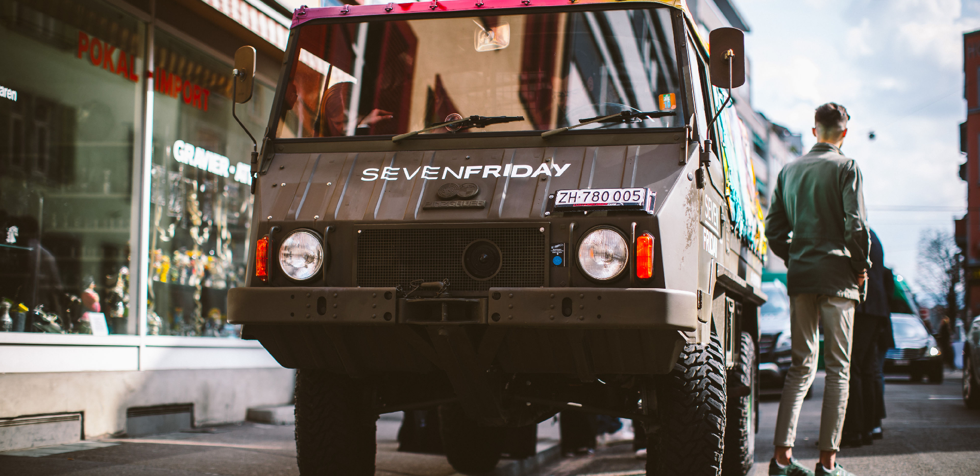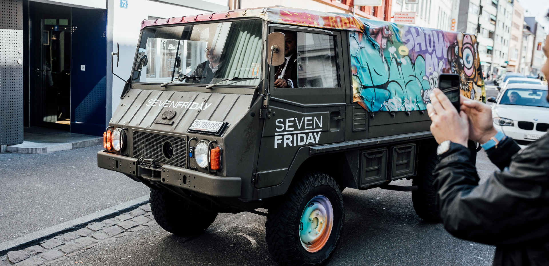 How do you follow-up last year’s Pop-Up at the Tesla Showroom in Basel? Ride the street of Basel in an old army truck pimped out by Zurich graffiti artists, One Truth. Basel was a buzz as the pinzgauer took to the streets and served as the SEVENFRIDAY office for meetings with distribution partners, friends, media and influencers. Locals and fair attendees who tagged us on Instagram were featured in stories.