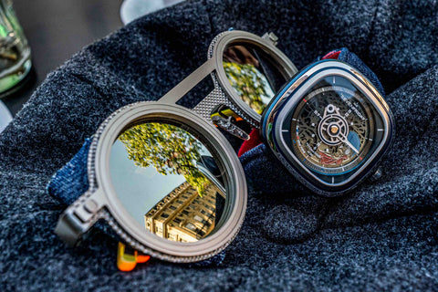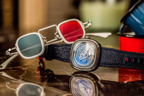 And we decided to celebrate these “à la Sevenfraïdé” by creating the most recent Off-series, the T1/01 Cocorico. Its asymmetrical skeletonized dial is resolutely inspired from Art Nouveau. The strap harks back to the French origins of Denim! And if you look carefully you will find a nod to French “Art de vivre”! Santé!