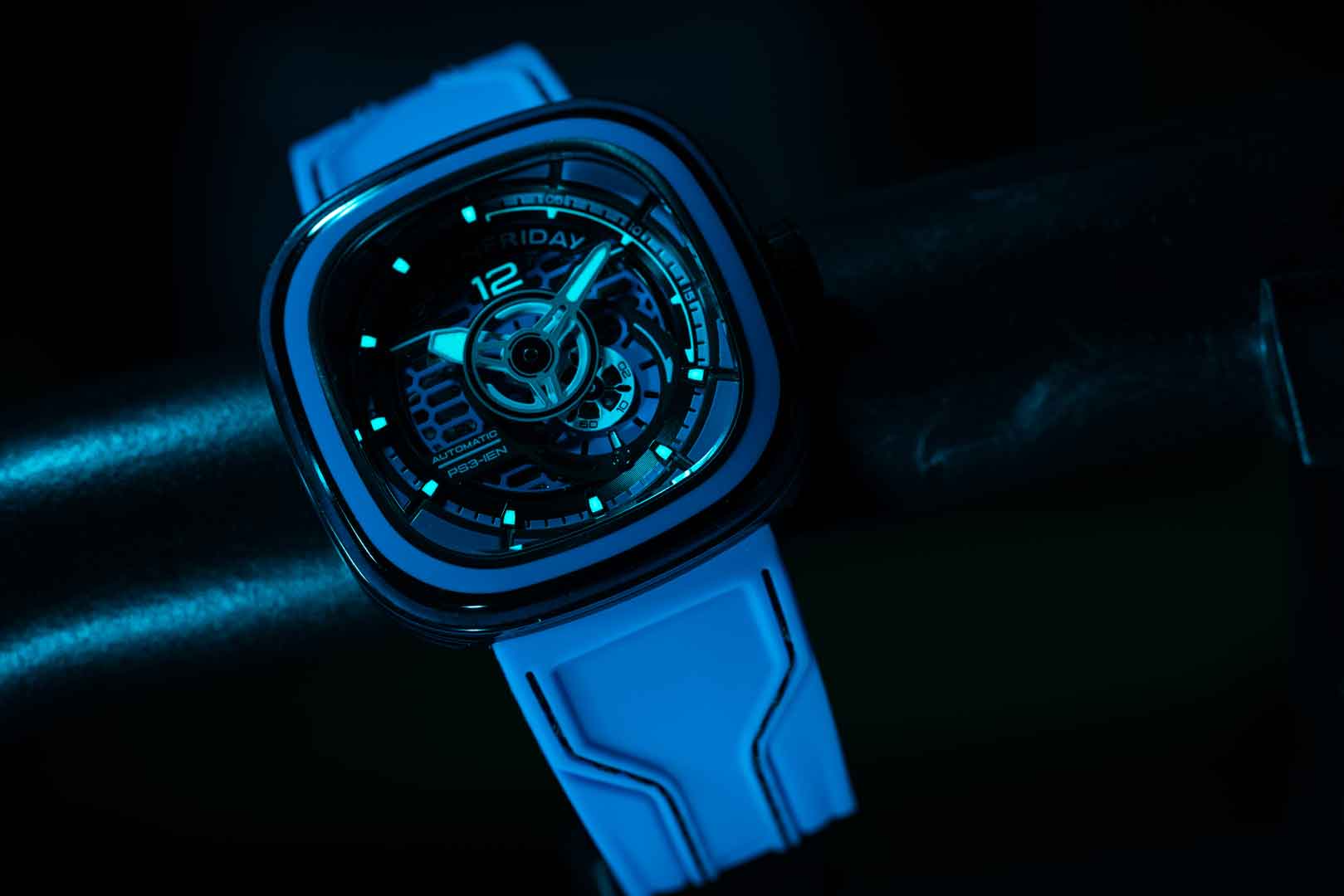 Watch in connection with the SEVENFRIDAY App, thanks to an NFC chip embedded in the caseback, allowing secured authentication and registration.