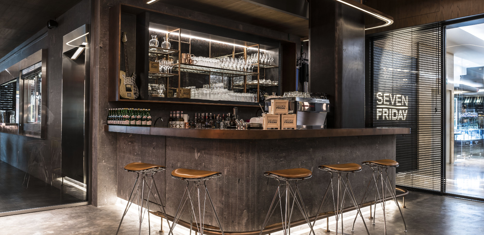 James Coates, Interiors Director at BusbyWebb said: "We developed the idea around seeing the inner-working within the Space, as we do with the watches, to create a retail experience. We did this by developing the current offer and layering textures, exposing the skeletons of the current architecture to a refined ‘industrial feel’, but still in-keeping with the SEVENFRIDAY brand. “The environment had to be different with a more multi-functional social Space for the customer, so you can immerse yourself with the brand or hang out with a coffee, beer or food,” he adds.