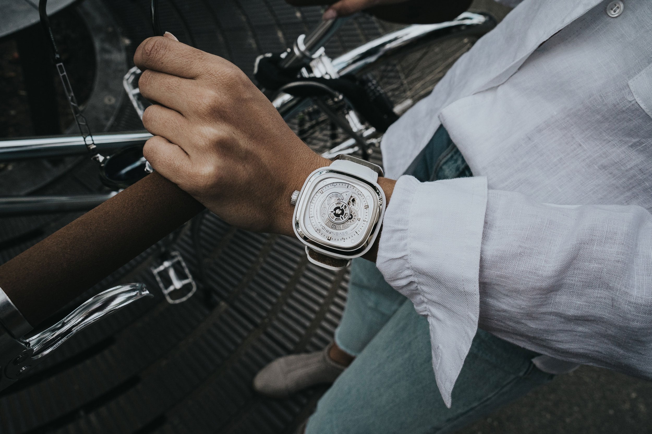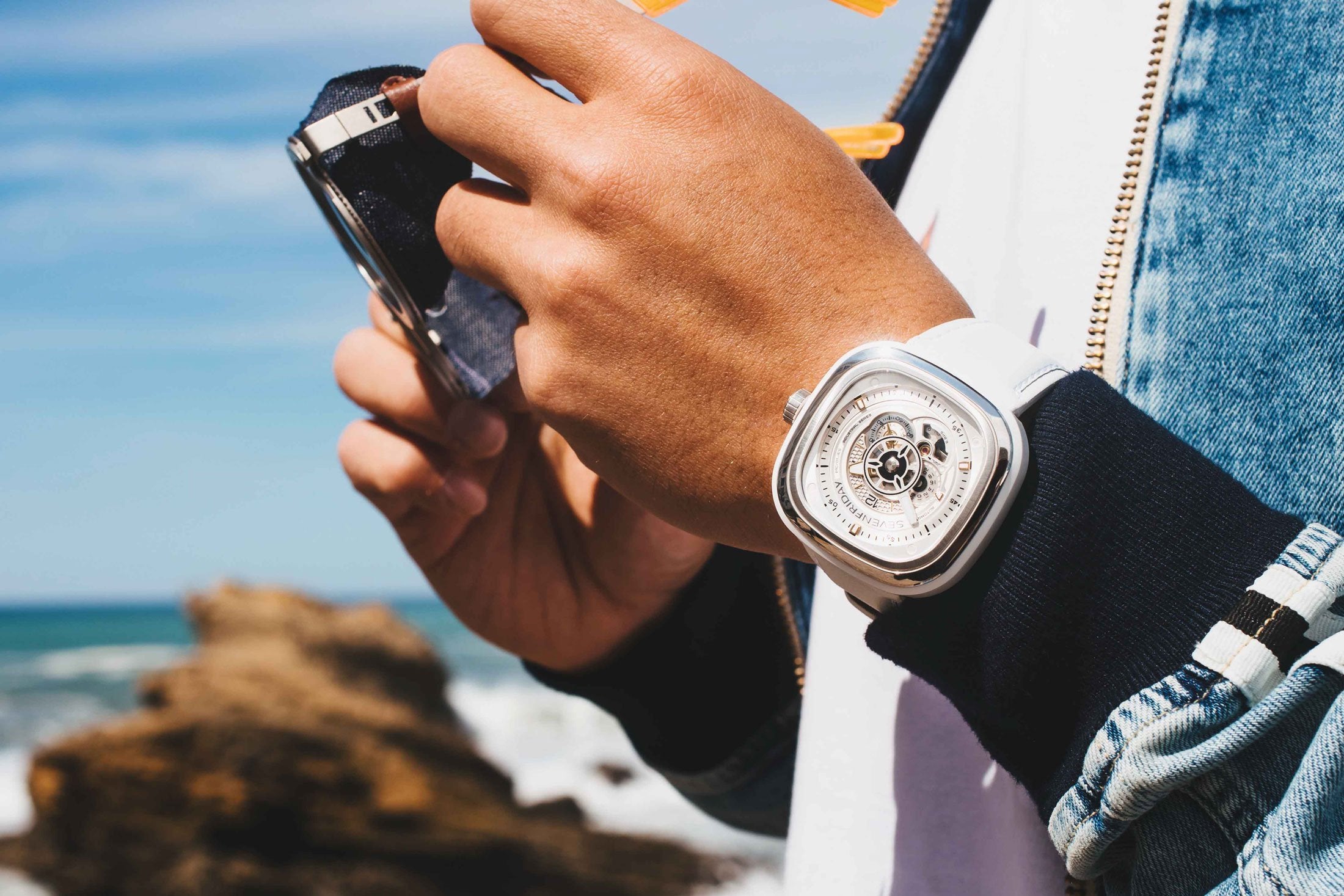 Capturing the essence of this ultimate getaway is the latest launch from SEVENFRIDAY and the third in its lineage of white watches, the PC1/01 a.k.a "ALBA"