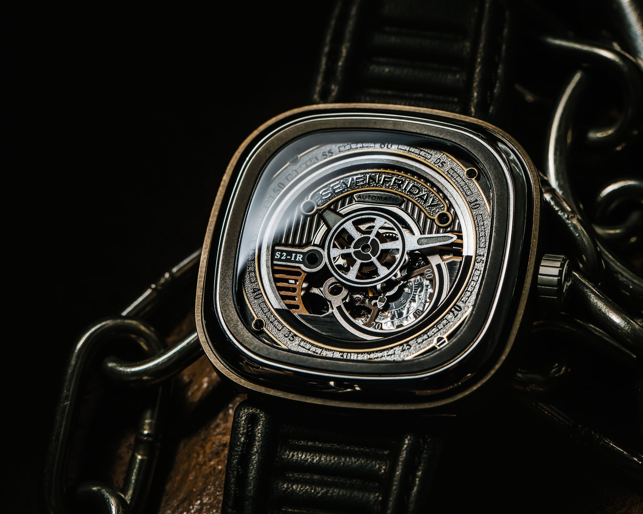 Like the ubiquitous valve that patinas with good use, the S2/01 is a study of the hard-working machines that helped define the second industrial revolution. The rhodium and antique brass open design detail surrounded by an antique brass animation ring of the S2/01 shows the deep appreciation for the valve as the workhorse of the industrial revolution. The S2/01 is a noteworthy timepiece that exemplifies for the individual, the pride and progression of its industrial revolution influences