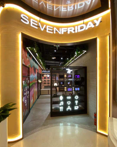 The perfect place to drop by while strolling from store to store, this space too is instantly recognizable as a part of the SEVENFRIDAY group! With our tried and true rustic wooden displays and plenty of pictures of our products to be seen, Fuzhou epitomizes SEVENFRIDAY style!